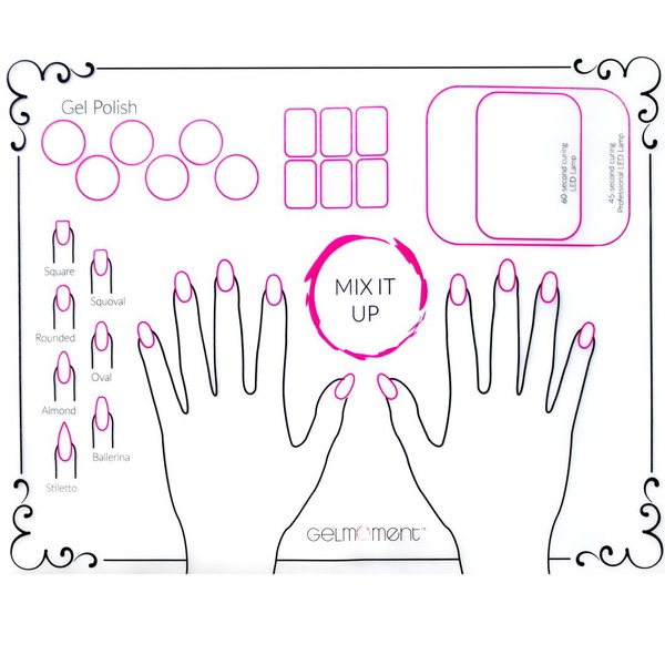 - Features helpful graphics of different nail shapes as well as suggestions of where to place your hands and gelmoment products.
